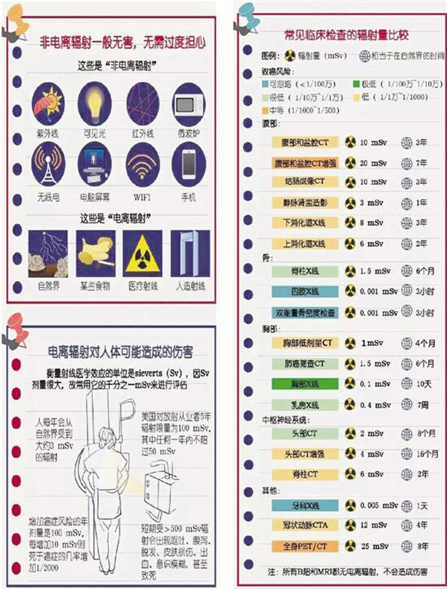 體檢車經(jīng)過幾十年的發(fā)展越來越先進(jìn),DR體檢車上面裝有車載DR設(shè)備??梢宰鲂夭縓光線檢查。一臺(tái)透視儀在體檢者胸前來回移動(dòng)照射,醫(yī)生在另一頭的檢查室觀察。體檢車放射檢查的確有利有弊是一把雙刃劍,不應(yīng)檢查過度,也不必因此諱疾忌醫(yī)。因?yàn)橥ㄟ^檢查可以更加容易對(duì)患者的病情確診,對(duì)癥下藥。放射性體檢,對(duì)身體或多或少有點(diǎn)傷害,主要的危害是放射檢查對(duì)我們是通過來自X線產(chǎn)生的電離進(jìn)行輻射。但是在必須檢查的情況下研究表明利大于弊,因?yàn)榻邮芤欢康妮椛涫钦5?。體內(nèi)可以自我修復(fù)。一個(gè)大人接受一年100毫西弗的輻射對(duì)身體沒多大傷害的。但是不能過度放射檢查。當(dāng)有必要做的。當(dāng)數(shù)不能過于頻繁的情況或逐步改善無顯著變化,也沒有必要每天進(jìn)行審查,否則成為放療的變相。以下是常見臨床檢查的輻射量比較圖