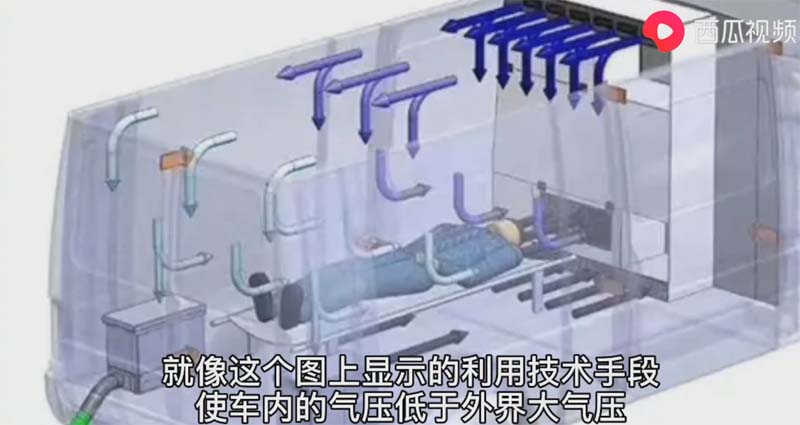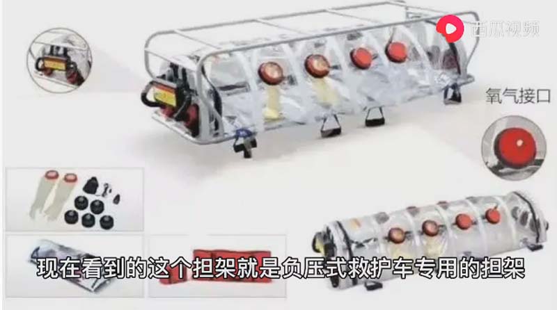 在車輛行駛狀態(tài)下通過空氣的自由流動,只能把車外的氣流流向車內(nèi),而且車內(nèi)的氣體通過無毒化處理后排出車外。像這種屬于人傳人的傳染病可以避免更多的人被傳染。在運轉(zhuǎn)病人的時候也可以最大限度的隔離病人和醫(yī)護人員。同時可以使醫(yī)患互相感染?,F(xiàn)在看到這個擔(dān)架就是負(fù)壓救護車的專用擔(dān)架。