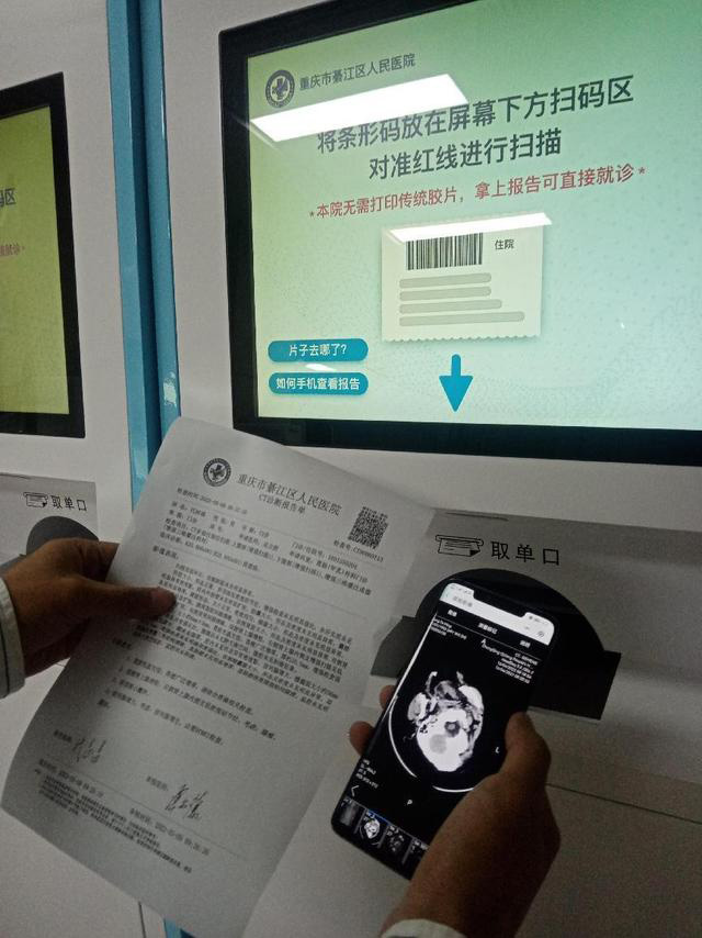 4、膠片和報告怎么領(lǐng)???用條形碼,在自助取片機(jī)自己領(lǐng)取,膠片和報告一般都是同一個條形碼。