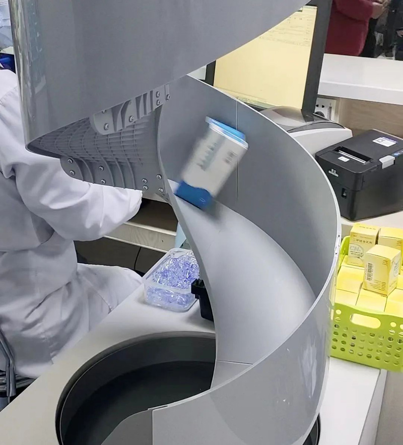隨著人工智能的發(fā)展,以質(zhì)量為核心、以病人為中心”的服務(wù)理念。提高醫(yī)療服務(wù)質(zhì)量,改善群眾就醫(yī)體驗(yàn),醫(yī)院都紛紛上線智慧藥房。發(fā)藥機(jī)投入使用讓病患享受到更加便捷的藥學(xué)服務(wù)。發(fā)藥機(jī)從外形看,就像是大型自動(dòng)售貨機(jī),解決了人工發(fā)藥取藥調(diào)配差錯(cuò)率高、沒(méi)有過(guò)程記錄環(huán)節(jié)、患者等待時(shí)間長(zhǎng)等缺點(diǎn),緩解了高峰期配藥壓力。發(fā)藥機(jī)系統(tǒng)還會(huì)自動(dòng)鎖定過(guò)期藥品功能強(qiáng)大,發(fā)藥機(jī)內(nèi)部溫度恒溫,有藥品缺藥的提示功能,系統(tǒng)就會(huì)按照處方的內(nèi)容自動(dòng)調(diào)配藥品,可以及時(shí)的補(bǔ)充藥品。實(shí)現(xiàn)實(shí)時(shí)監(jiān)控。這樣讓病患可以得到用藥需求。藥品充足就不會(huì)讓病人久等。最后把調(diào)配好的藥品通過(guò)傳輸帶輸送到發(fā)藥窗口。提高了效率將簡(jiǎn)單繁重機(jī)械重復(fù)式的工作交給智能發(fā)藥機(jī)完成。配合具有108存儲(chǔ)位的智能調(diào)配機(jī)和78種藥品拆零的分包機(jī),系統(tǒng)全天能達(dá)到6000張?zhí)幏教幚砟芰?,確實(shí)能緩解高峰期配藥壓力。真正實(shí)現(xiàn)了藥品調(diào)配的全流程智能化操作。為患者的用藥安全提供了有力的保障。