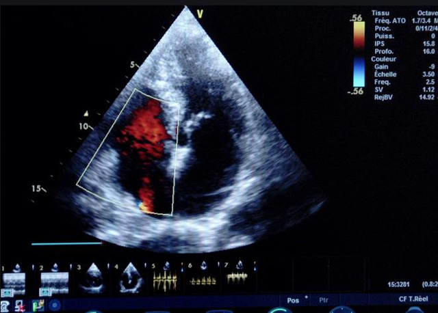 (三)檢測節(jié)段性室壁運動異常,研究冠心病患者左心室功能和分析局部室壁運動過程中。測量每一節(jié)段室壁的運動量,運動正常的節(jié)段彩帶色彩均勻?qū)哟喂庹?。運動減弱的節(jié)段,厚度薄層次不全。心內(nèi)膜位移幅度和速度均減低。心內(nèi)膜位移幅度和速度甚低或難以測得。正常的多層彩帶消失,呈現(xiàn)紅色色帶,心內(nèi)膜位移呈負向,幅度和速度亦減低。急性心肌梗死的患者中可用于識別存活心肌抑或壞死心肌。多巴酚丁胺負荷試驗存活心肌的心內(nèi)膜位移幅度增高,停藥后即消失,而壞死心肌則無上述表現(xiàn)。實時檢查冠心病的節(jié)段性室壁運動異常,有時候通過發(fā)現(xiàn)局部心肌運動的時相異常,對于心臟傳導障礙的診斷也可能有幫助。