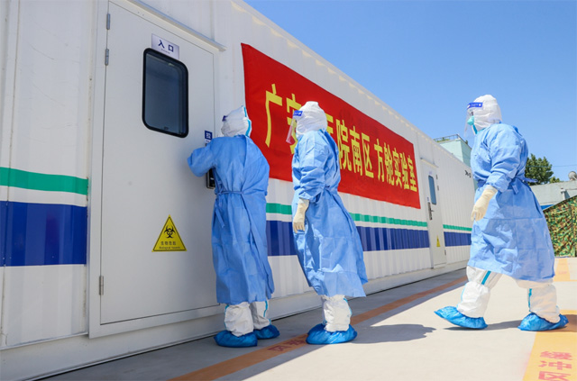 方艙實(shí)驗(yàn)室外形似集裝箱貨柜,單個(gè)艙體占地面積約40平方米,它雖小,但功能齊全。提高核酸檢測能力,堅(jiān)決守住來之不易的疫情防控成果方艙實(shí)驗(yàn)室助力疫情防控的重要手段。疫情無情人有情,大范圍的核酸檢測,分秒必爭。檢測人員物資整理、核酸樣本接收排版、數(shù)據(jù)整理、結(jié)果錄入、報(bào)告審核,實(shí)驗(yàn)室的檢測人員在距離病毒最近的地方,符合二級生物安全實(shí)驗(yàn)室的要求,整體負(fù)壓,準(zhǔn)確嚴(yán)謹(jǐn)完成每個(gè)實(shí)驗(yàn)步驟。方艙實(shí)驗(yàn)室分為四大區(qū)域,包括試劑準(zhǔn)備、樣本處理、核酸擴(kuò)增等核酸檢測必備工作區(qū),為配合核酸檢測任務(wù)安全有序完成,方艙實(shí)驗(yàn)室運(yùn)行期間,檢測量很大,確保準(zhǔn)確高效的檢測,檢測人員的工作時(shí)間很長,平均日工作時(shí)間約18個(gè)小時(shí)。方艙實(shí)驗(yàn)室的啟動運(yùn)行,緩解各個(gè)檢測系統(tǒng)的壓力,靈活作業(yè)的特點(diǎn),爭做核酸檢測質(zhì)量的壓艙石,嚴(yán)格實(shí)驗(yàn)室管理制度,高質(zhì)量科學(xué)檢測,必要時(shí)還可突破地域限制,疫情防控保障工作提供了高效有序的運(yùn)轉(zhuǎn)。確保核酸檢測工作安全、及時(shí)、精準(zhǔn)、高效。